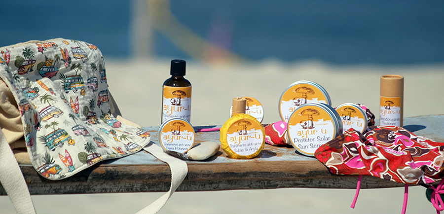 O protector solar é um produto icónico da Ayur-u. Concebido para quem passa muito tempo ao ar livre, inclui na sua formulação protectores físicos e químicos (saber mais), ou seja: ingredientes que filtram a quantidade de radiação solar que chega até à pele; ingredientes que absorvem e posteriormente dissipam uma percentagem da radiação solar, evitando que tenha efeitos nocivos na pele e ingredientes que estimulam a produção de melanina – a protecção natural do organismo, e que é sem dúvida, a protecção mais eficaz. (Ler mais sobre protector solar)